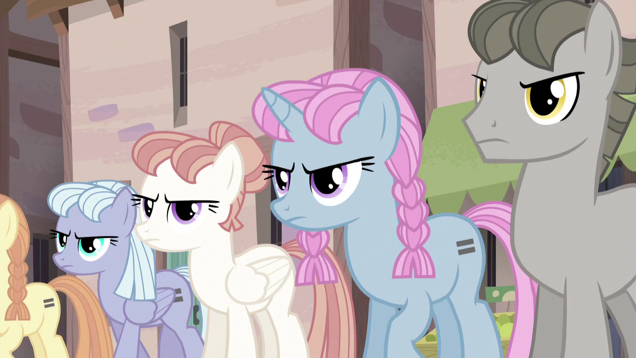И снова чушь - при побеге от Трикси морда ещё кислее была. Будете утверждать что она Трикси испугалась? Вообще по ходу это её обыкновенная реакция на проблемы с друзьями: Санбёрст - расплакалась и убежала, Уравненные - расплакалась и убежала, Трикси - расплакалась и убежала. А вы всё какую-то муть про диктат выдумываете. К слову, на этом кадре ещё и гнев столь вами лелеемый на мордах уравненных отсутствует.Испуг прекрасно читается по глазам и опущенным ушам.